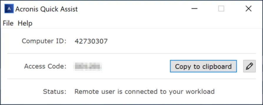 Quando solicitado, forneça a ID do computador e o código de acesso da caixa de diálogo para a pessoa que está se conectando ao seu computador.